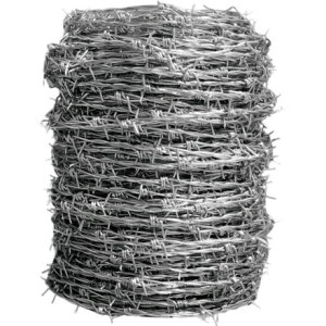 【商品スペック】特長●針金にトゲ状の針金を取り付けてた鉄線です。●鉄材にユニクロメッキを施した商品です。用途●保護したい区画に木杭などを打ち込み、そこに張り巡らせて使用。●人の侵入や鳥獣避けに用いられます。仕様●番手(