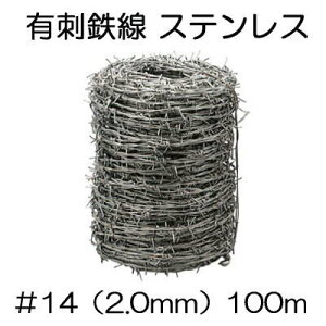 ・針金にトゲ状の針金を取り付けてた鉄線です。・鉄材にユニクロメッキを施した商品です。 ・保護したい区画に木杭などを打ち込み、そこに張り巡らせて使用。・人の侵入や鳥獣避けに用いられます。 ・番手(#):14・線径(mm):2・長さ(m)...