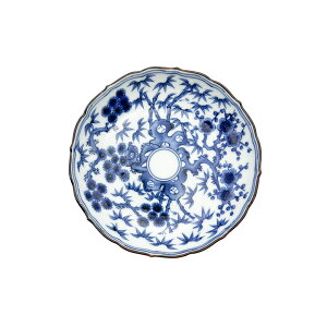 サイズ φ12.3xH2.8cm 素材 磁器 生産地 有田焼 備考 - 古典的な染付文様もクラス感のある佇まいの有田焼5寸皿。縁の桔梗のデザインも魅力。繊細な松竹梅が描きこまれ、品のいい佇まいで普段使いに...