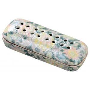 有田焼は佐賀県有田町を中心とした地域で作られる陶磁器の総称です。透き通るような白磁の美しさと、繊細で華やかな絵付が特徴です。 「花影寝かせる線香皿」は特殊な網を使用しているため一本でも燃焼します。また灰を使わずに使うた