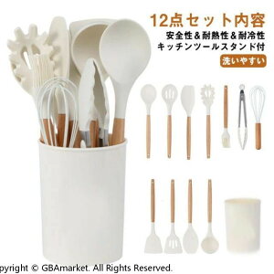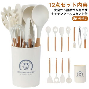 ナチュラル感のある木ハンドル&シリコーン製キッチンツール12点セット。【キッチンツールスタンド付き】【安全性&耐熱性&耐冷性】食用レベルのシリコーンで作られて、BPAフリーなので、直接食品に接触でき、ご心配なく毎日楽しみま