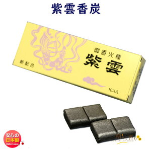 品名 紫雲炭 10本入 燃焼時間 (1本)約90分 寸法 (1本の大きさ)40×25×10mm 内容量(Net Weight) 10本入 パッケージ 紙箱 135×42×25mm 製造元 児玉兄弟商会 日本国内製