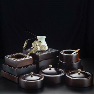 灰皿 大きい 木製 黒檀 おしゃれ リビング ルーム ホーム チャイナ風 個性的 レトロ 無垢材 カバー ふた 付き シンプル メンズ ギフト ドラゴン 鳳凰 ラウンド 四角 光沢