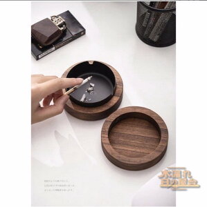 上質な天然木のフタつき灰皿!選べる丸型・スクエア型外側のケースは、衝撃に強く耐久性に優れた天然木「クルミ」素材。天然素材ならではのナチュラルな質感が魅力。灰皿は耐火性・耐久性のあるステンレス素材。どんなテイストのイン