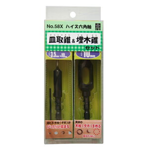 【用途】ビスの下穴(3.5mm)、皿取(10mm)、木栓作り(10mm)用ドリル。【機能・特徴】インパクトドライバ・電気ドリルでご使用ください。【仕様】●6.35mm六角軸。【材質】●軸:ハイス材。●刃:ハイス材...
