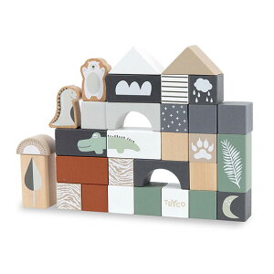 CO。 楽しい木製のブロックセット。 50個のブロックを使って自由に積んだり、建物をたてたり。 積み木遊びはお子様の創造力を養います。 バケツ型のパッケージはお片付けボックスとし