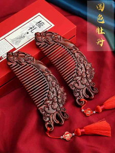 櫛 コーム レディース 誕生日 プレゼント 母の日 木 箱 袋 ストラップ タッセル 彫刻 牡丹 アンティーク レトロ 赤 オールシーズン 家 コンパクト櫛のタイプ: 木製櫛長さ:10cm(両端含む)-15cm(両端含む)