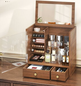 【コンパクトだけど大容量】収納に困るコスメをまとめて収納できる、大容量卓上コスメボックス。組み立てなしで、届いてすぐにご使用いただけます。 材質:木製 パッケージ内容:化粧品収納ボックス1個(写真の化粧品は含まれません)...