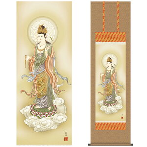 【商品の説明】創業70年、掛け軸販売数日本最大級の掛け軸メーカー制作の掛け軸。掛け軸に使うオリジナル絹紙を使用し絵画を制作。手彩色仕上げ(一部に手彩で補色) 。制作元オリジナル絵画用絹紙「新絹本」により高発色・高耐久を実現