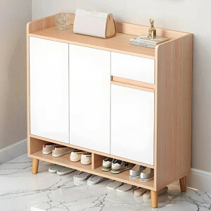 【大容量下駄箱】扉付き下駄箱は見た目がすっきりスタイリッシュなだけでなく、使い勝手も非常に便利です。底部のグリッドデザインにより、入ったときに配置されたスリッパを簡単に履くことができます。毎日の靴をキャビネットのドア