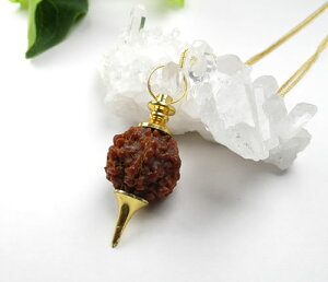■製造国 インド ■金属部分 黄銅(真鍮) ■ルドラークシャ約17〜20mm程度 ■全長(ペンジュラム先端を含む)約40cm ■チェーン 50cm(真鍮ロジウムメッキチェーン) 珍しいルドラークシャのペンダント件ペンジュラム、5ムキで...
