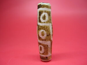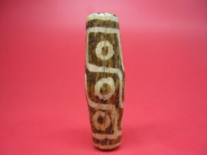 【チベット天珠】 木化石 九眼天珠 ☆商品情報☆ 長さ:約43mm 直径:約Φ13mm 穴サイズ:約Φ2mm 中国・チベット天珠 ※材質上、表面にキズや凹み等があります。 ※照明等の関係で実際の色と多...