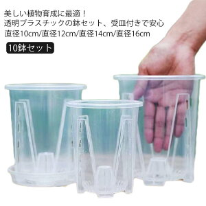 10鉢セット 美しい植物育成に最適!透明プラスチックの鉢セット、受皿付きで安心 直径10cm/直径12cm/直径14cm/直径16cm【多用途に最適】この10鉢セットの植木鉢は、胡蝶蘭や洋蘭、多肉植物、観葉植物など、さまざまな植物に適...