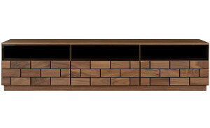 WLD-009185 TVボード(ウォールナット)角材の組み合わせがリズム感を生み出し、前板に表情を与えたリビングシリーズ。絵になる存在感が魅力で、一つ一つ手作業で削られた角材には、職人の思いが込められています。■...