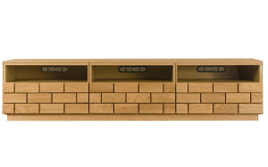 WLD-012110 TVボード(オーク) 受注生産品角材の組み合わせがリズム感を生み出し、前板に表情を与えたリビングシリーズ。絵になる存在感が魅力で、一つ一つ手作業で削られた角材には、職人の思いが込められています。前面のガラスは黒ガラス