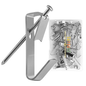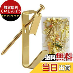 商品名:ピンフック/画鋲フック 重量制限:約22.5 キログラム 取り付けタイプ:壁取り付け 取付場所:木、石膏ボード、ベニヤ カラー:ゴールド 入数:20個 特徴:耐久、多機能、取付け簡単 ●この画鋲フックは多目