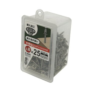 強度の高いSUS410ステンレスを使用。焼入れ加工を施し、釘より強い保持力を実現。電動ドライバーが仕様できるので優れた作業性を維持。●用途:比較的柔かい木に適している。●原産国:台湾●材質:ステンレス ●呼び径:3.8...