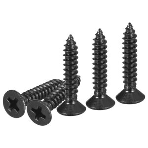 4x1" フラットヘッド木ねじ 304ステンレス鋼十字頭自己攻釘ねじ - 木工 家具に最適 - 黒 [自己攻釘ねじ]: パッケージには100個の黒自己攻釘ねじが#4x1"サイズ(ねじ径全長)で含まれています。数量は十分であり...