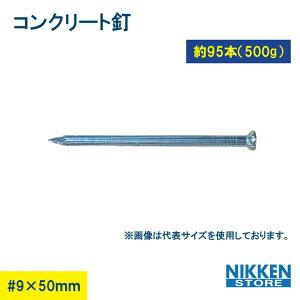 コンクリート用釘 【サイズ】寸法9mm×全長50mm 【販売単位】1箱約95本入 ※画像は代表のものを使用しています。 ※仕入時期によっては、商品のメーカーが異なる可能性がございます。
