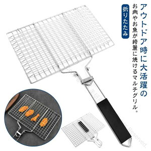 ・アウトドア時に大活躍のお肉やお魚が綺麗に焼けるマルチグリル。・直火や炭火にも適したステンレスの網で頑丈に作りました。・食材を挟んで火にかけられる仕様でお肉や魚の身が崩れず、中まで火が通ります。・グリル器をクルクルと