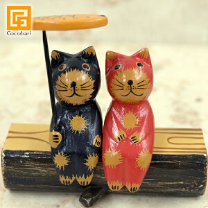 ぶらぶらウッドオブジェ バリネコ バリ猫 猫 ねこ ネコ 人形 木彫り 動物 オブジェ 置物 カラフル 玄関 リビング ■カラー ライトブルー【54071】/ライトパープル【540...