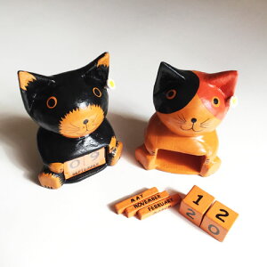 大きな頭が愛らしいスマイルネコのマンスリーカレンダー デスク周りのインテリアに… 飾ってあるだけでも目を引くかわいさです ◇◆◇◆◇◆◇◆◇◆◇◆◇◆◇◆◇◆ ■材質 木製 ■サイズ(cm) 高さ約11・横幅約8・奥行き約6 ■生産