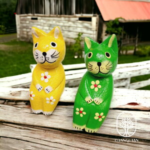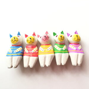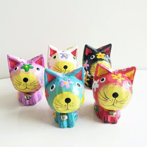 体より大きな頭の愛らしい猫の木彫りです 卓上サイズの場所をとらない大きさです 花柄ペイントが鮮やかなパッと目をひく5カラーセット 【材質】木製 【サイズ】(cm)高さ4・5×横幅3.5×奥行3 【生産国】インドネシア...