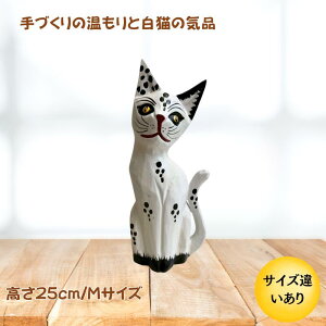 サイズ 約:高さ24〜25cm 幅10〜11cm 奥行4cm 材 質 天然木 商品説明 バリ島の職人によるハンドメイドのホワイトキャットです。ホワイトをベースに黒い斑点模様と黄色い瞳が印象的で、クールな中にも愛嬌を感じさせます。木の温...