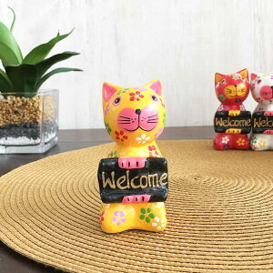 ・商品詳細 手のひらサイズで、どこにでも置きやすい猫の置き物。 お行儀よく正座してWelcomeボードを持った木彫りのネコちゃんです。 パステルカラーと花柄で、とっても癒されます♪ 玄関やリビングに...