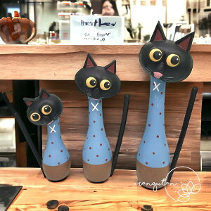 癒しのバリ雑貨、可愛らしい木彫りのバリ猫さんです♪ ゆっくり眺めているととても心が和むインテリアです。 一つ一つ職人が手作業でペイントしているので、 色柄が商品ごとに...
