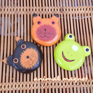 バリ雑貨 バリの木彫りで出来たアニマルのマグネット ホワイトボードや冷蔵庫にピタッとくっつければ ほのぼの空間の出来上がり 【サイズ】 縦…約5.5cm 横…約5cm 原産国…インドネシア 材質…木製 職人さんの手造りの為、サイズ・形・色