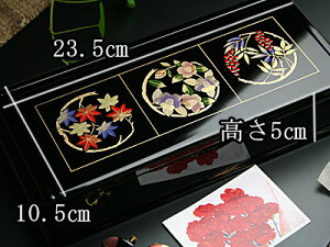 枕もとやサニタリーなどに置いておくと便利な小物入れです 和の風合ある四季の花をデザインした蒔絵がフタに描かれています、内側に布を貼ってあるなど使いかってのよい小物入れです 外寸:23.5センチ×10.5センチ 高さ5センチ 内寸2...
