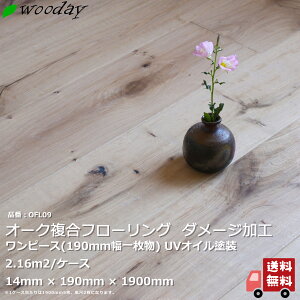【樹 種】 オーク(ナラ) 【構 造】 複合フローリング 挽板3mm 【仕上げ】 UVオイル塗装 ワンピース 【サイズ】 厚14mm×幅190mm×長さ1,900mm 【内容量】 2.16m2/ケース(1900mmx5枚 乱尺x2枚)...