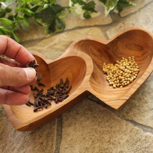 食卓を彩るダブルハートのトレイ 高級木材といわれるチークウッドを使用しています。 食卓やおもてなしに、さり気なく木のぬくもりをプラス♪