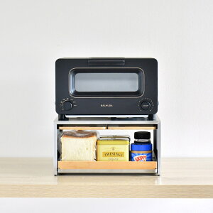 日本産の木材×ステンレスが織りなす機能美でトースター下にたっぷり収納。コンパクトに置いてたっぷり収納。配膳に便利なサービングトレイ付き幅36cmで狭いキッチンでもスッキリ。引き出して使える収納スペースと、2枚のトレー付きで便利です。引...