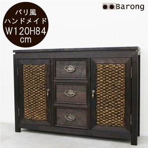 当店で製作したハンドメイド家具です。天然木の風合いと手作りの温かみを感じる、バリ風のデザインです。扉のウォーターヒヤシンスの編みとバリ島の金具がおしゃれで、アジアンリゾートの雰囲気をお楽しみいただけます。 生産国 当