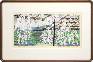 ■京都詩情 平安神宮の春 井堂グリーンともよばれる独特の色づかいで 四季折々の美しい風景を描いた井堂雅夫 平安神宮は、平安遷都1100年を記念して創建された 京都市左京区にある神社です。 谷崎潤一郎をはじめとした数々の