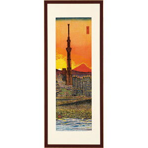 東京にそびえたつ世界一高い「スカイツリー」初の木版画化江戸から伝わる伝統の技法で見事に表現スカイツリーは高さ634メートルをついに実現し、世界一高いタワーとしてギネスに認定されました。(2012年5月認定・ギネス世界記録2012に掲