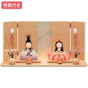 桃の節句 雛人形 商品説明※お人形の手持ちの道具、頭飾りは付属します サイズ(cm) 間口45×奥行25×高さ20 仕様 内容 平飾り 親王飾り お道具:油灯、桜橘 ◆ふんわりピンクと屏風の桜が目を引く、やさしい表情の雛人形 送料 送...