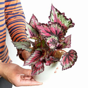 荒木植物園さんが心を込めて育てたベゴニア・マクラータ。 ブラジル原産の木立ち性ベゴニアです。ベゴニア・マクラータは水玉模様の葉が特徴的で、ベゴニアの中でも特に強健なため初心者向けのベゴニアです。耐寒性も高く、温暖な地域
