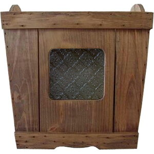 どこか懐かしいフローラガラスをあしらったウッドバスケットです。 野菜ボックス・お子様のおもちゃ箱・プランターカバーなどいろんな場所で活躍します。 両サイドに持ち手がついているので持ち運びにも便利。 持ち手も針金をたたき出