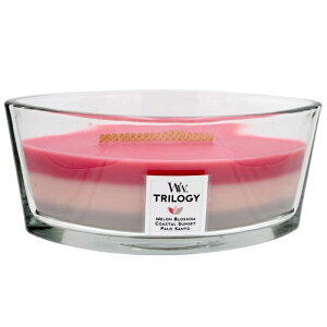 ■ 商品情報 ■ 重厚感と流れる炎が美しいハースウィックに、WoodWickのパチパチ音だけでなく、溶けていく色と香りの変化を楽しめるトリロジータイプが登場。3層のカラーグラデーションが美しいトリロジー、層ごとに香りの異なるプレミア