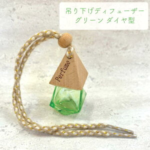 お好きな香りを空間に広げて消臭やリラックス。 まるで宝石のようなグリーン ダイヤモンド型の瓶と 三角形の木製キャップがおしゃれなフレグランス瓶です。 ※空ボトルです。中身は入っておりません。 吊り下げ式+長さ調整可能なスト