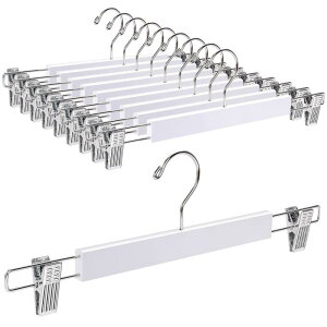 Amber Home 木製ズボンハンガー スカートハンガー 10本組 パンツハンガー ボトムス スラックス 型崩れ防止 滑り止め 調節可能 強力クリップ シワ防止 回転フック 防錆 クローゼット収納整理...