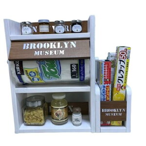【3段スパイスラック(奥行14cm)】 コストコのキッチンペーパーサイズ対応のスパイスラックです。 前面の扉にバスロールサイン風にステンシルで文字を入れました ※ロゴ入れについては選択いただけます! 奥行を14cmにしたことで、キャニ