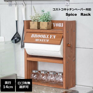 カフェ風の奥行9cmの大型スパイスラックです。 ロゴが入っているので、キッチンをオシャレに演出できます。 ※ロゴ入れについては選択いただけます! 調味料など、キレイに収納できます。 (注意)日本製ペーパーのみ対応です。 『外寸