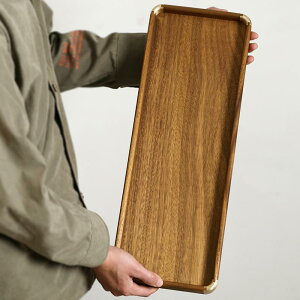 木製 トレー おしゃれ カフェ ウォールナット 象嵌 銅 無垢材 家庭用 長方形 収納 スナック つや消し 手作り シンプル ナチュラル 普段使い レトロ スタイリッシュ リビング