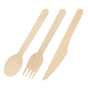 「脱プラスチック」で環境保護・社会貢献を目指す木製カトラリーです。スプーン・フォーク・ナイフの3点セット。衛生的な完封袋入りです。●入数:50セットスプーン:長さ158mm/フォーク長さ:158mm/ナイフ長さ:160mm原材料:白樺