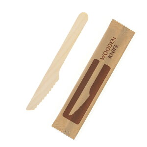 て廃棄できる、環境に配慮したナイフです。テイクアウト、お弁当、アウトドア、バザー、イベントなどにおすすめです。1本ずつ個包装されているので衛生的です。●入数:100本サイズ:140mm原材料:木