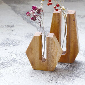 商品重量:0.06kg 素材:本体-天然木(塗装-ウレタン),付属品-ガラス管 手のひらにすっぽりおさまる、無垢の木の一輪挿し。 ナチュラルな印象でお部屋のインテリアとして活躍します。